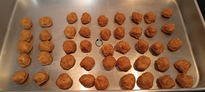 Pasamos a un bol y añadimos la canela molida, la sal, la mantequilla, el agua de azahar y amasamos con las manos hasta que estén todos los ingredientes integrados. - Retiramos a un bol y le damos forma de bolas del tamaño de una cereza.