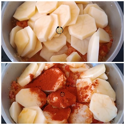 - Pasado los 10 minutos incorporamos las patatas y el pimentón.