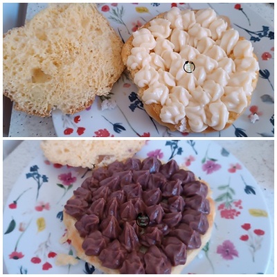 - Si queremos podemos rellenar nuestros mini roscones, o podemos dejarlos tal cual. Nosotros los vamos a rellenar de crema pastelera o crema pastelera de chocolate